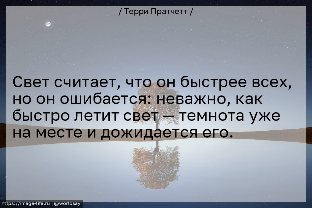 Свет считает, что он быстрее всех, но он ошибается: неважно, как быстро летит свет — темнота уже на месте и дожидается его.