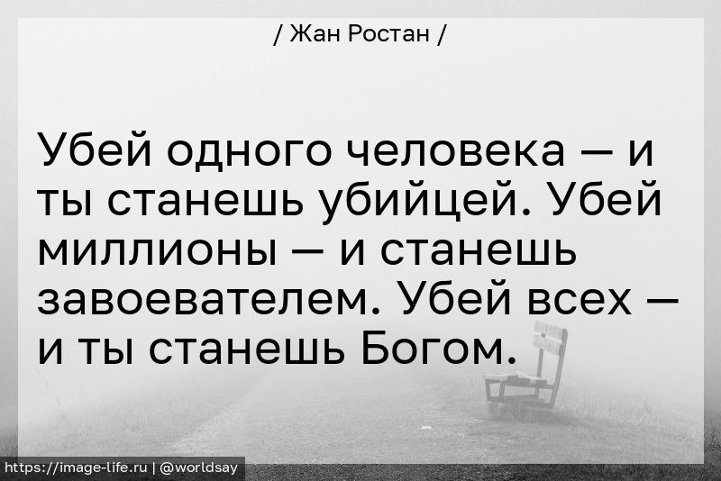 Убей одного человека — и ты станешь убийцей. Убей миллионы — и станешь завоевателем. Убей всех — и ты станешь Богом.