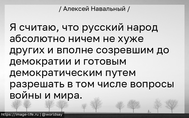 Я считаю, что русский народ абсолютно ничем не хуже других и вполне созревшим до демократии и готовым демократическим путем разрешать в том числе вопросы войны и мира.