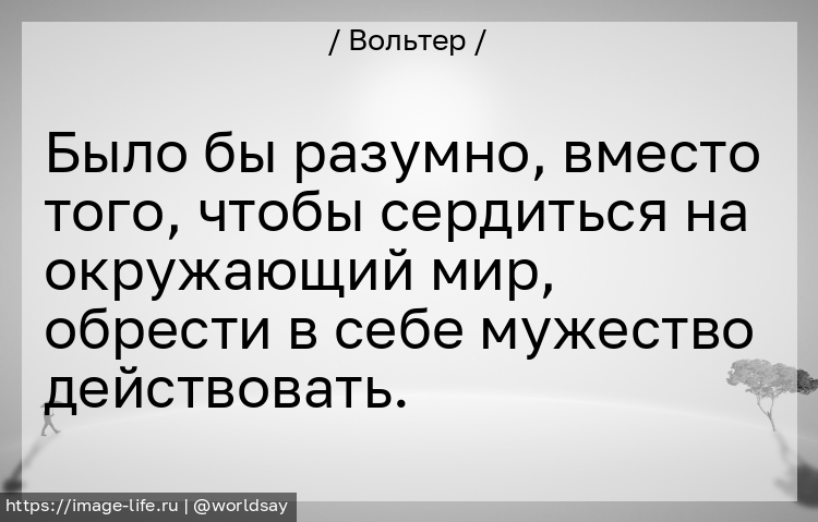 Было бы разумно, вместо того, чтобы сердиться на окружающий мир, обрести в себе мужество действовать.