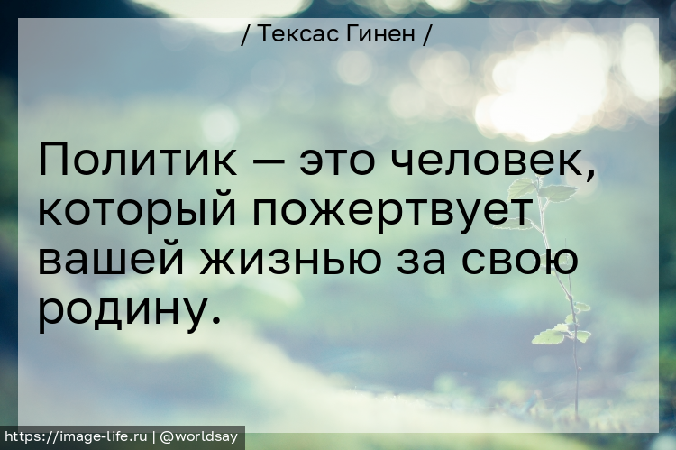 Политик — это человек, который пожертвует вашей жизнью за свою родину.