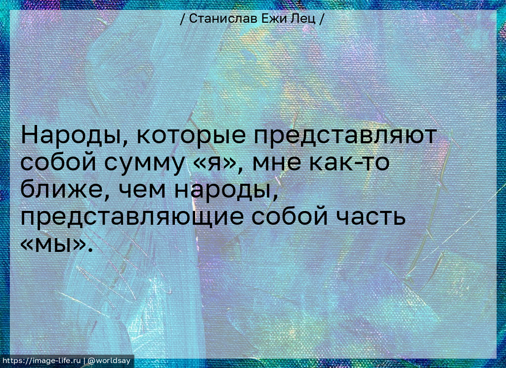 Народы, которые представляют собой сумму «я», мне как-то ближе, чем народы, представляющие собой часть «мы».