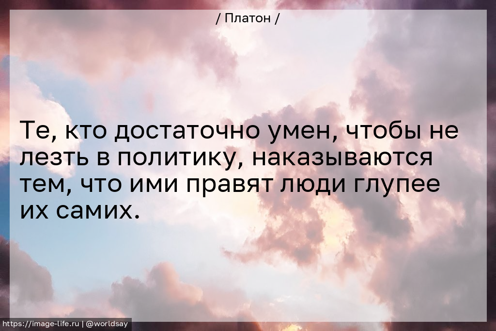 Те, кто достаточно умен, чтобы не лезть в политику, наказываются тем, что ими правят люди глупее их самих.