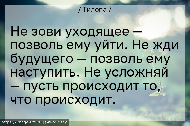 Не зови уходящее — позволь ему уйти. Не жди будущего — позволь ему наступить. Не усложняй — пусть происходит то, что происходит.