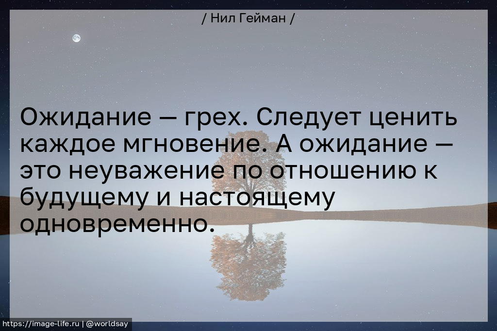 Ожидание — грех. Следует ценить каждое мгновение. А ожидание — это неуважение по отношению к будущему и настоящему одновременно.