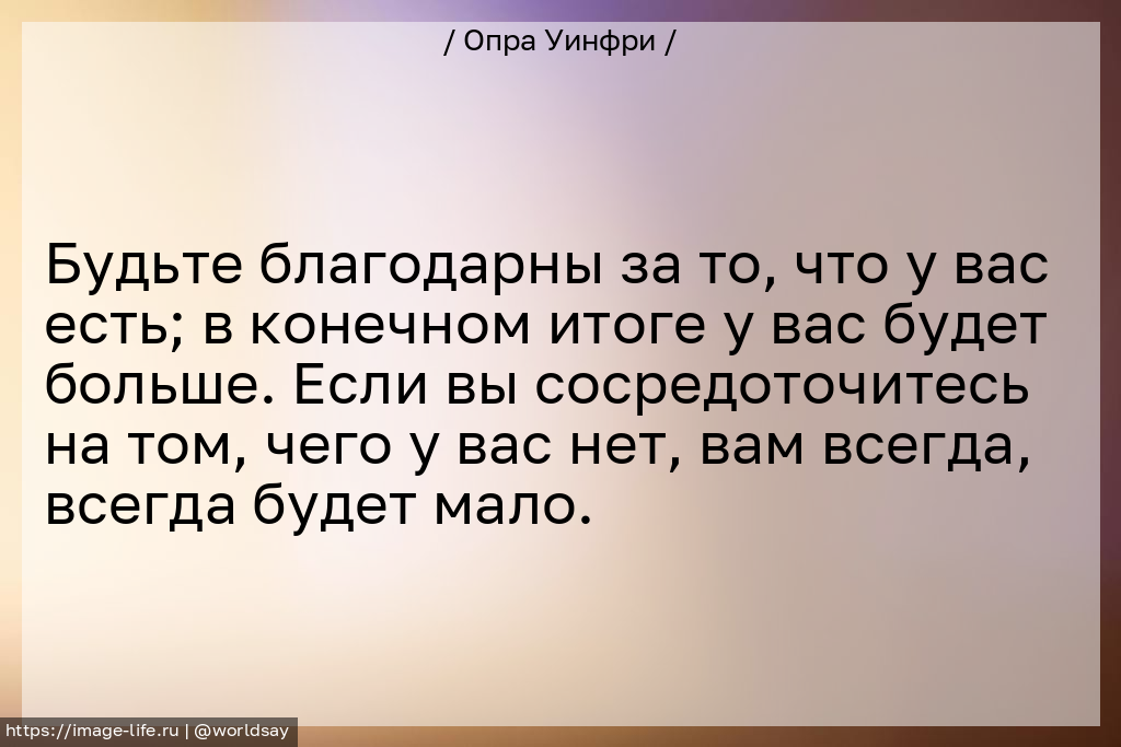 Будьте благодарны за то, что у вас есть; в конечном итоге у вас будет больше. Если вы сосредоточитесь на том, чего у вас нет, вам всегда, всегда будет мало.
