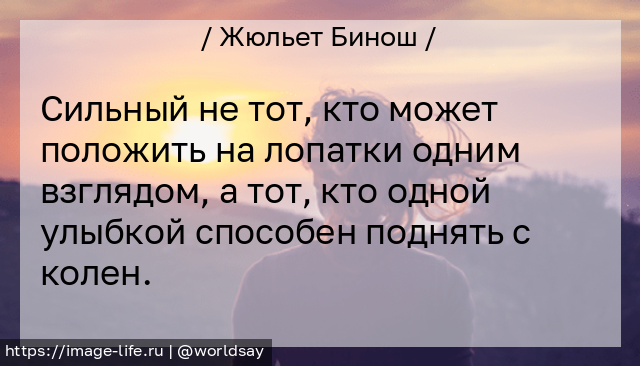 Сильный не тот, кто может положить на лопатки одним взглядом, а тот, кто одной улыбкой способен поднять с колен.