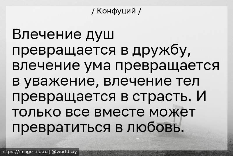 Влечение душ превращается в дружбу, влечение ума превращается в уважение, влечение тел превращается в страсть. И только все вместе может превратиться в любовь.