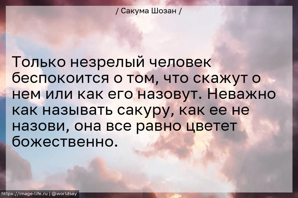 Только незрелый человек беспокоится о том, что скажут о нем или как его назовут. Неважно как называть сакуру, как ее не назови, она все равно цветет божественно.