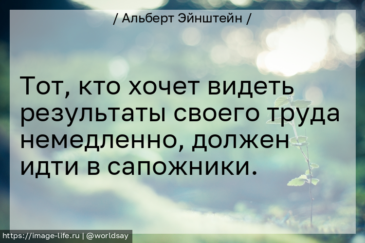 Тот, кто хочет видеть результаты своего труда немедленно, должен идти в сапожники.