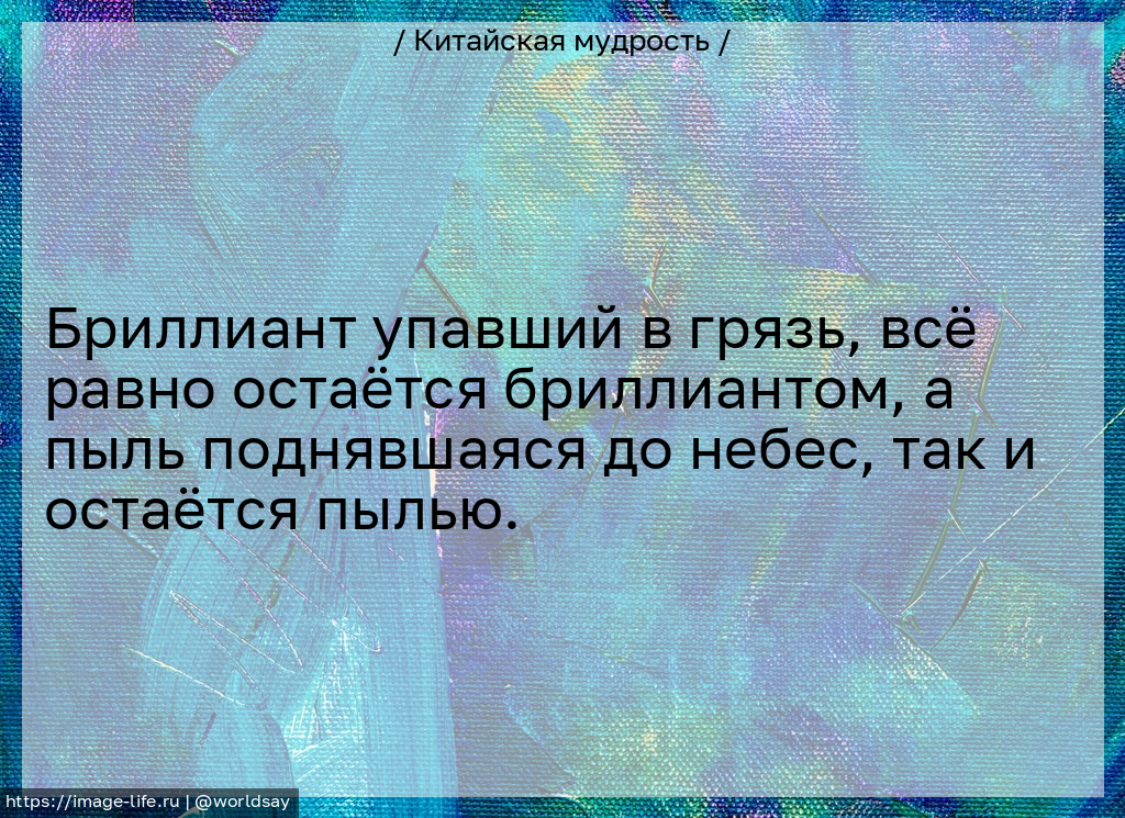Бриллиант упавший в грязь, всё равно остаётся бриллиантом, а пыль поднявшаяся до небес, так и остаётся пылью.
