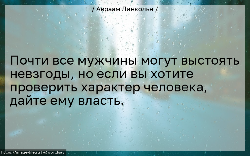 Почти все мужчины могут выстоять невзгоды, но если вы хотите проверить характер человека, дайте ему власть.