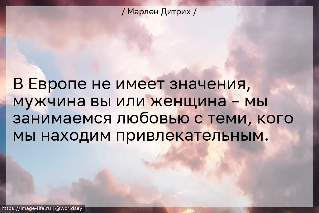 В Европе не имеет значения, мужчина вы или женщина – мы занимаемся любовью с теми, кого мы находим привлекательным.