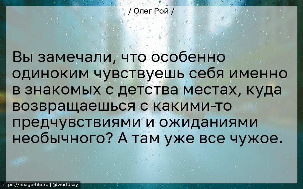 Вы замечали, что особенно одиноким чувствуешь себя именно в знакомых с детства местах, куда возвращаешься с какими-то предчувствиями и ожиданиями необычного? А там уже все чужое.