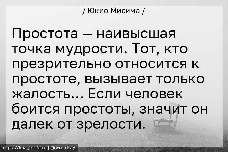 Простота — наивысшая точка мудрости. Тот, кто презрительно относится к простоте, вызывает только жалость… Если человек боится простоты, значит он далек от зрелости.