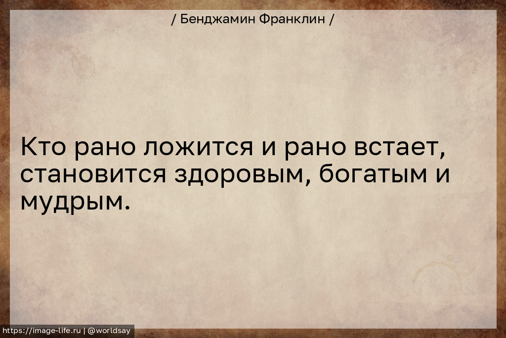 Кто рано ложится и рано встает, становится здоровым, богатым и мудрым.