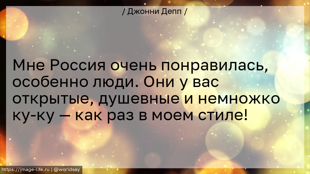 Мне Россия очень понравилась, особенно люди. Они у вас открытые, душевные и немножко ку-ку — как раз в моем стиле!