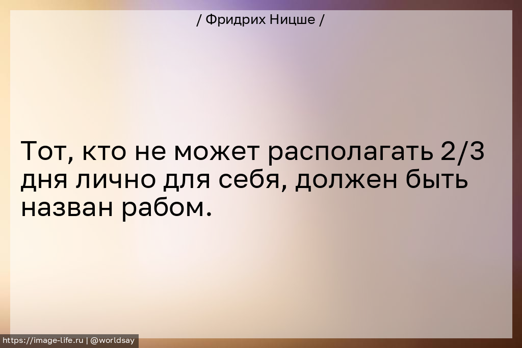 Тот, кто не может располагать 2/3 дня лично для себя, должен быть назван рабом.