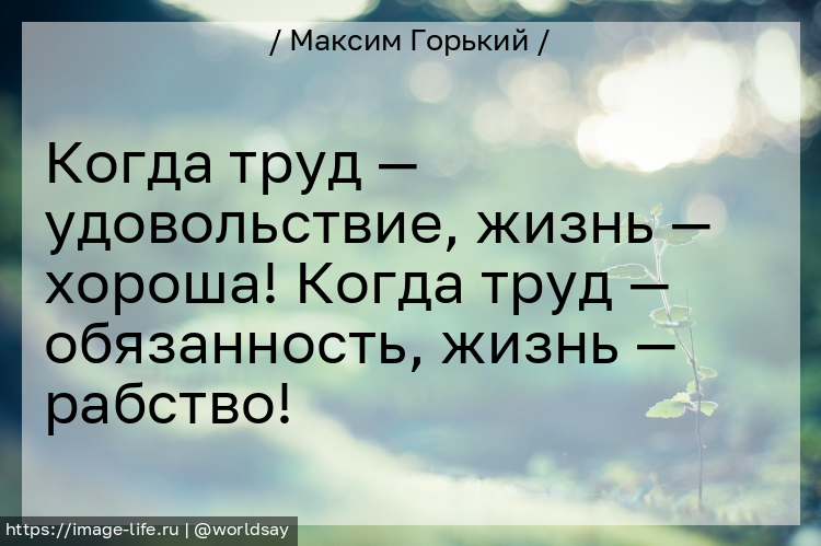 Когда труд — удовольствие, жизнь — хороша! Когда труд — обязанность, жизнь — рабство!
