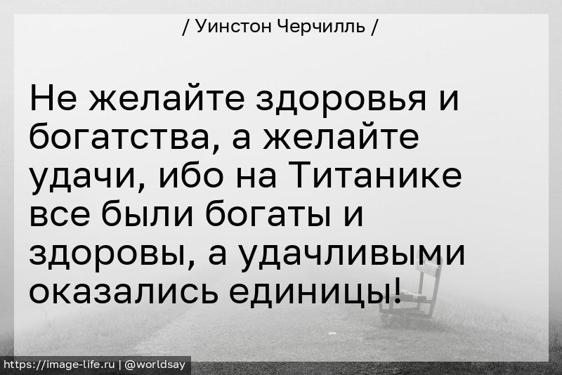 Не желайте здоровья и богатства, а желайте удачи, ибо на Титанике все были богаты и здоровы, а удачливыми оказались единицы!