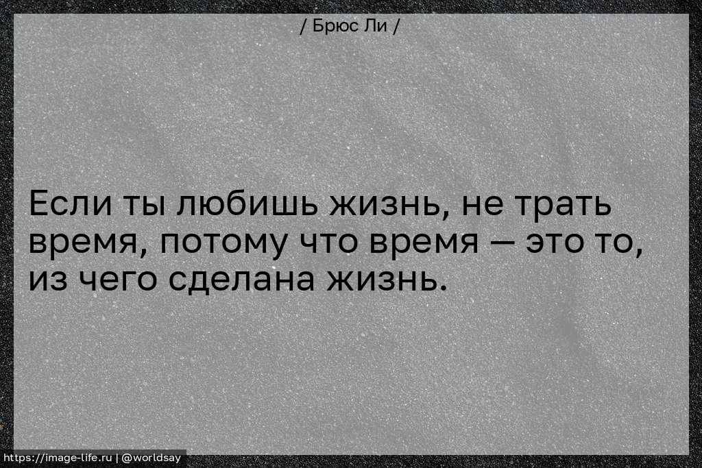 Если ты любишь жизнь, не трать время, потому что время — это то, из чего сделана жизнь.