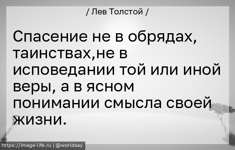 Спасение не в обрядах, таинствах,не в исповедании той или иной веры, а в ясном понимании смысла своей жизни.