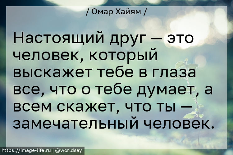 Настоящий друг — это человек, который выскажет тебе в глаза все, что о тебе думает, а всем скажет, что ты — замечательный человек.