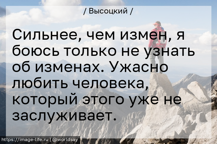 Сильнее, чем измен, я боюсь только не узнать об изменах. Ужасно любить человека, который этого уже не заслуживает.