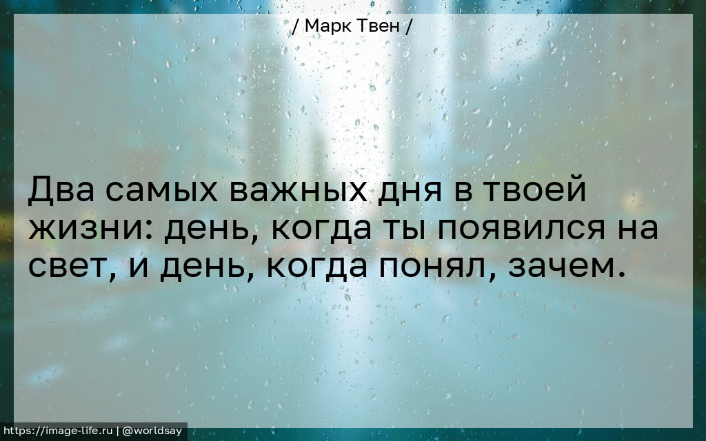Два самых важных дня в твоей жизни: день, когда ты появился на свет, и день, когда понял, зачем.