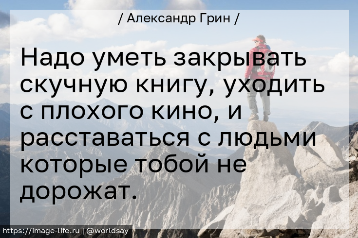 Надо уметь закрывать скучную книгу, уходить с плохого кино, и расставаться с людьми которые тобой не дорожат.