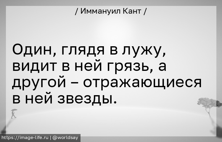 Один, глядя в лужу, видит в ней грязь, а другой – отражающиеся в ней звезды.