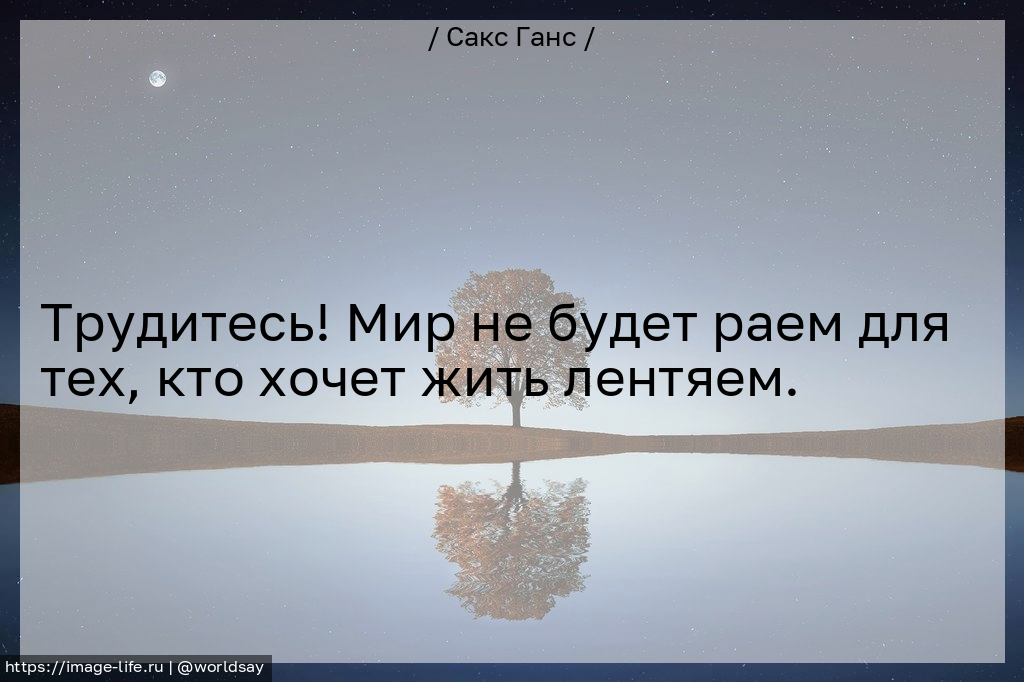 Трудитесь! Мир не будет раем для тех, кто хочет жить лентяем.