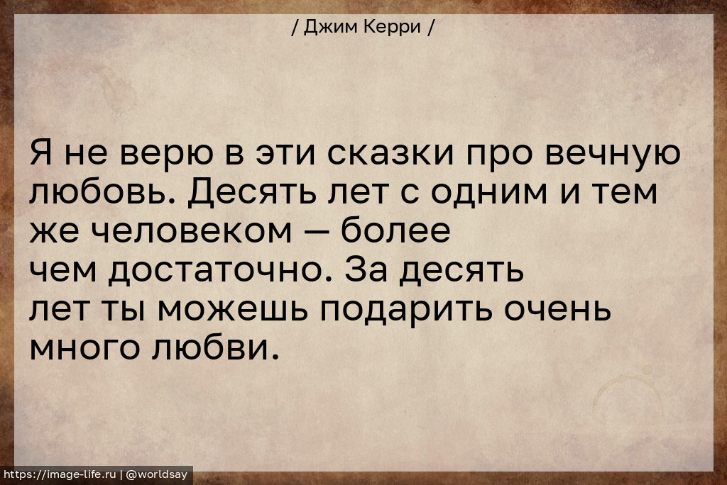 Я не верю в эти сказки про вечную любовь. Десять лет с одним и тем же человеком — более чем достаточно. За десять лет ты можешь подарить очень много любви.