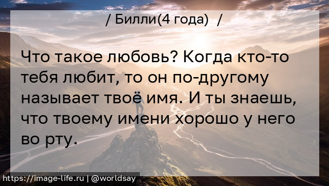 Что такое любовь? Когда кто-то тебя любит, то он по-другому называет твоё имя. И ты знаешь, что твоему имени хорошо у него во рту.