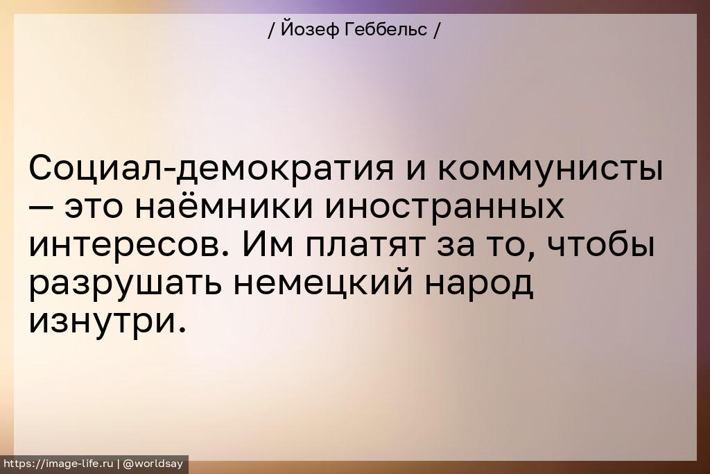 Социал-демократия и коммунисты — это наёмники иностранных интересов. Им платят за то, чтобы разрушать немецкий народ изнутри.