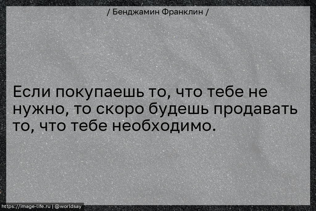 Если покупаешь то, что тебе не нужно, то скоро будешь продавать то, что тебе необходимо.