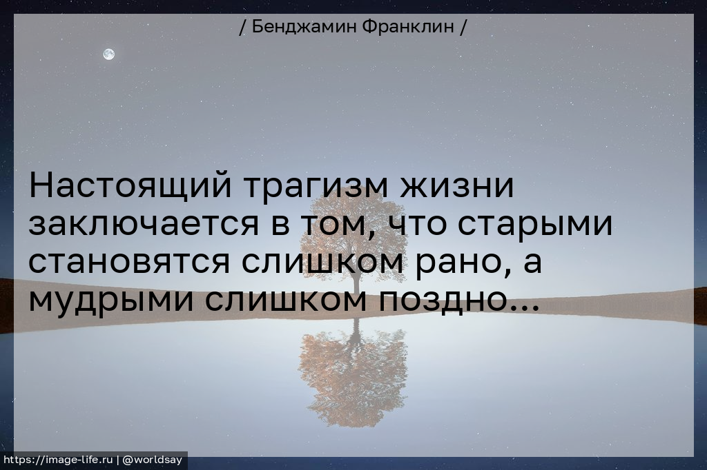 Настоящий трагизм жизни заключается в том, что старыми становятся слишком рано, а мудрыми слишком поздно...