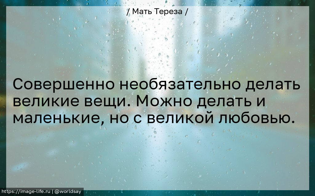 Совершенно необязательно делать великие вещи. Можно делать и маленькие, но с великой любовью.