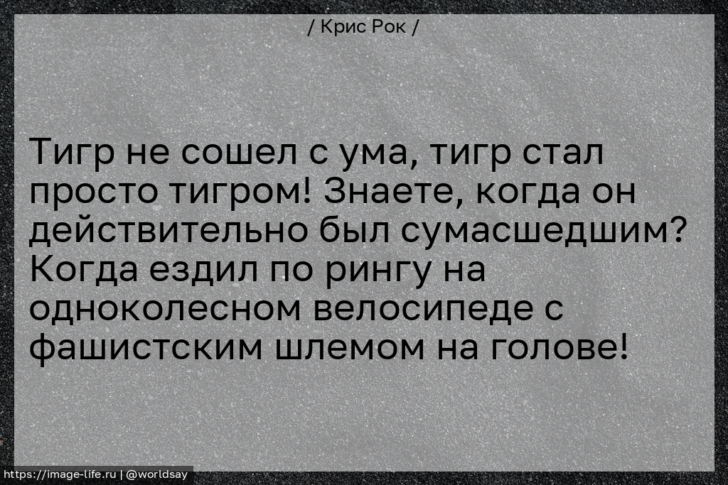 Тигр не сошел с ума, тигр стал просто тигром! Знаете, когда он действительно был сумасшедшим? Когда ездил по рингу на одноколесном велосипеде с фашистским шлемом на голове!