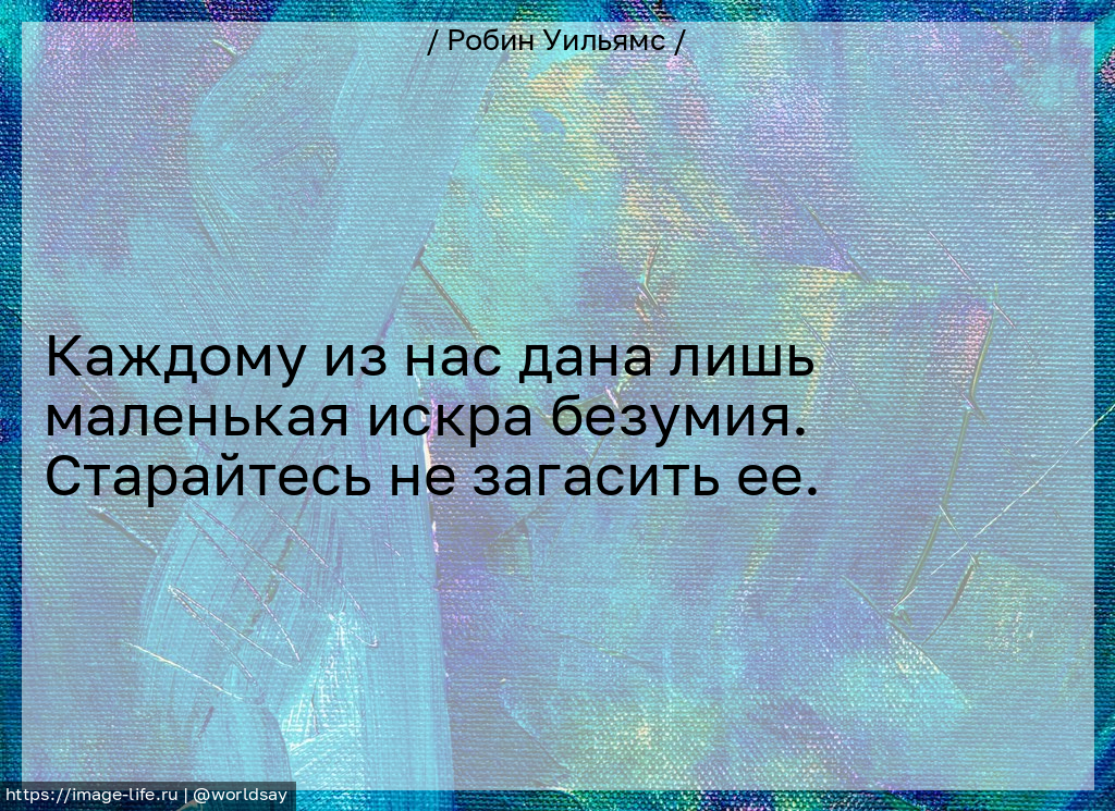 Каждому из нас дана лишь маленькая искра безумия. Старайтесь не загасить ее.