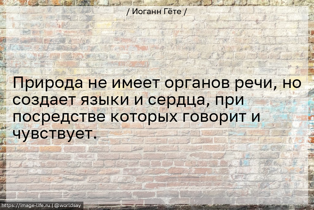 Природа не имеет органов речи, но создает языки и сердца, при посредстве которых говорит и чувствует.