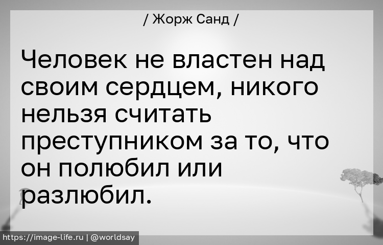 Человек не властен над своим сердцем, никого нельзя считать преступником за то, что он полюбил или разлюбил.