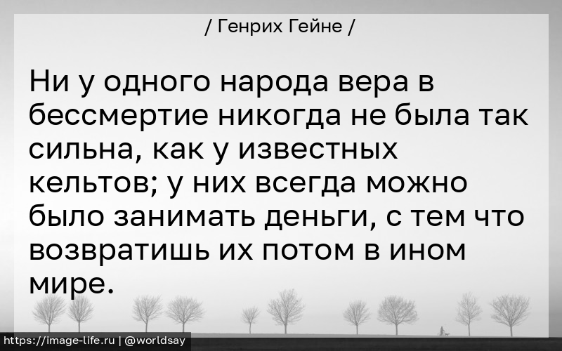 Ни у одного народа вера в бессмертие никогда не была так сильна, как у известных кельтов; у них всегда можно было занимать деньги, с тем что возвратишь их потом в ином мире.