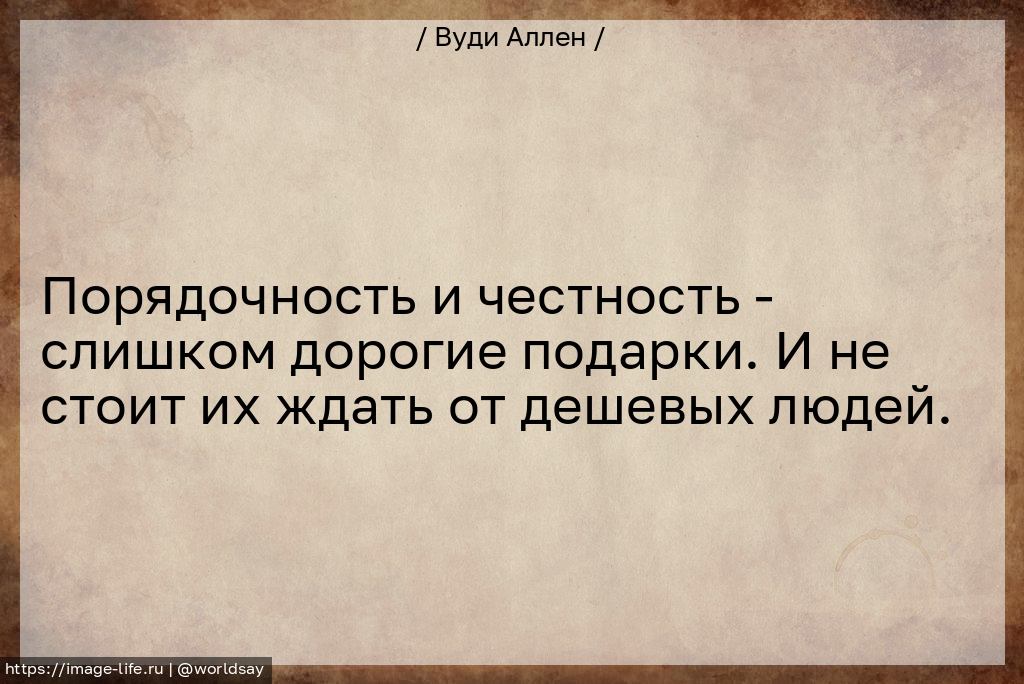 Порядочность и честность - слишком дорогие подарки. И не стоит их ждать от дешевых людей.