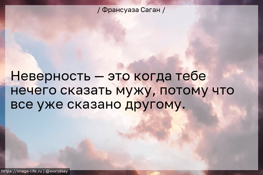 Неверность — это когда тебе нечего сказать мужу, потому что все уже сказано другому.
