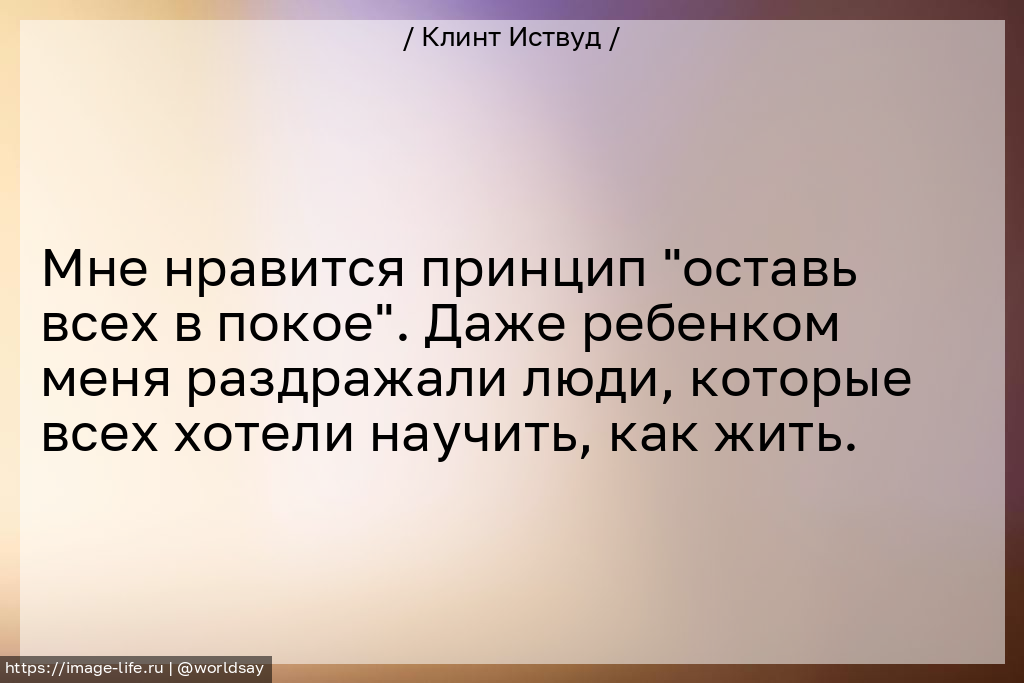 Мне нравится принцип "оставь всех в покое". Даже ребенком меня раздражали люди, которые всех хотели научить, как жить.
