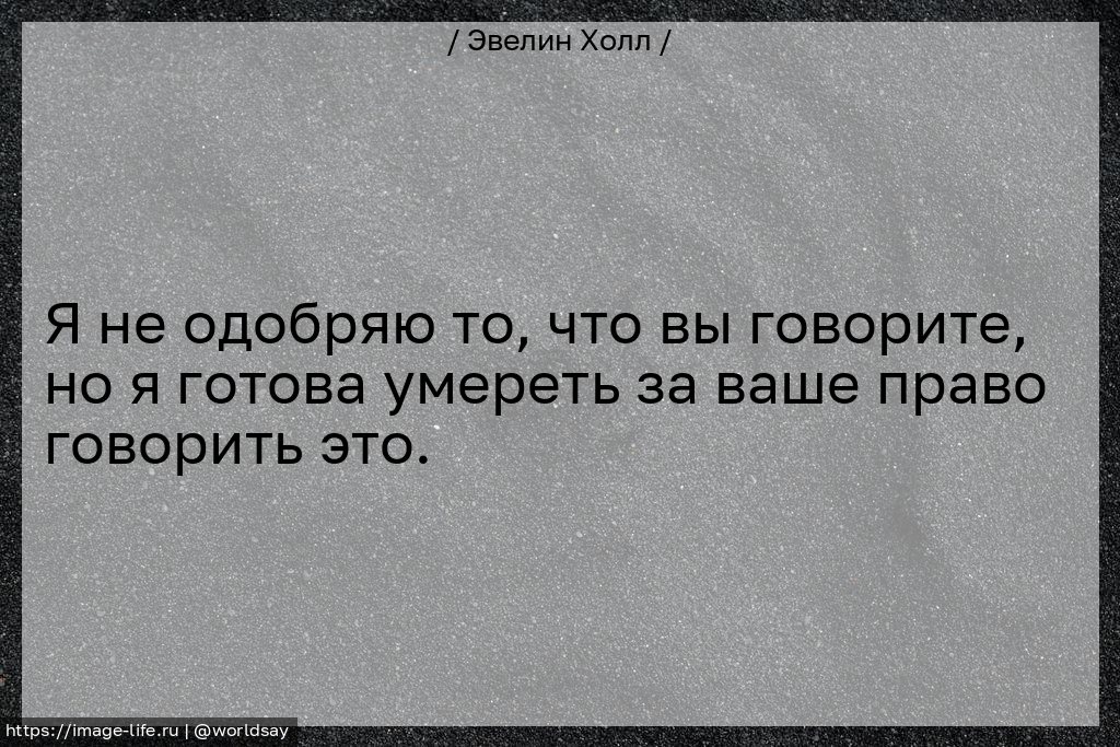 Я не одобряю то, что вы говорите, но я готова умереть за ваше право говорить это.