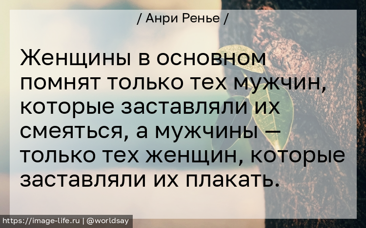 Женщины в основном помнят только тех мужчин, которые заставляли их смеяться, а мужчины — только тех женщин, которые заставляли их плакать.