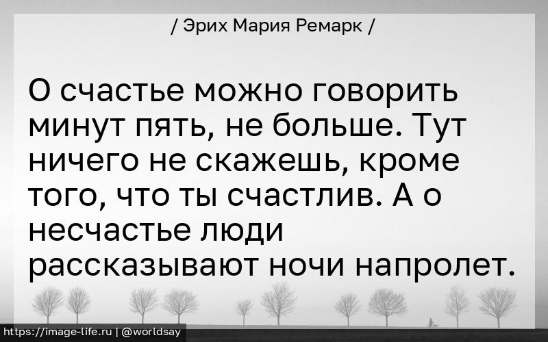 О счастье можно говорить минут пять, не больше. Тут ничего не скажешь, кроме того, что ты счастлив. А о несчастье люди рассказывают ночи напролет.