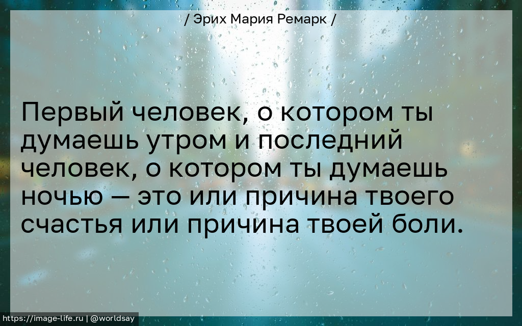 Первый человек, о котором ты думаешь утром и последний человек, о котором ты думаешь ночью — это или причина твоего счастья или причина твоей боли.